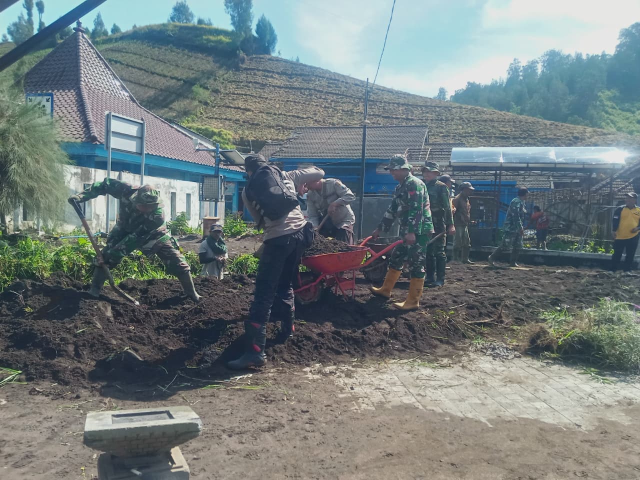Lumajang – Sinergitas TNI-Polri bersama masyarakat kembali terlihat dalam kegiatan kerja bakti pasca banjir yang terjadi pada 10 September 2025 di Desa Ranupani, Kecamatan Senduro, Kabupaten Lumajang, Selasa (7/10/2025).
